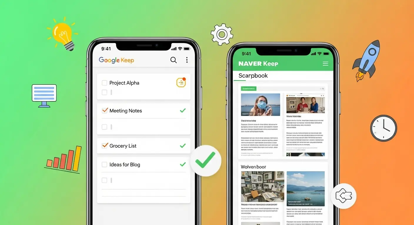 구글 Keep vs 네이버 Keep, 어떤 메모 앱이 당신의 업무 효율을 극대화할까요? 단순 메모부터 웹 스크랩, 팀 협업까지, 두 앱의 숨겨진 진짜 차이점 5가지를 심층 분석하여 당신에게 꼭 맞는 최고의 생산성 파트너를 찾아드립니다.